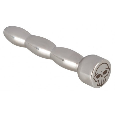 Tiempo atrás, hablándoos de las joyas para la uretra (en febrero de 2.018), ya mencionábamos la posibilidad de encontrarnos con plugs peneanos cuyo remate exterior, a fin de romper con la monotonía del diseño, consistía en un adorno que, según el material del que estuviera fabricado, podría ser toda una alhaja que lucir en el pene o, como poco, una alternativa morfológica. Uno de los mostrados llevaría como sujección una semiesfera diseñada como toda una calavera.